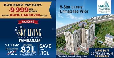 In Selaiyur, the 2 BHK apartments spread over 478 sq ft carpet area ranges rupees 46 lakhs, whereas 3 BHK over 1550 sq ft area costs rupees 1.18 crores. Some other housing projects of 2BHK and 3 BHK flats are available from 56.07 lakhs to 80.22 lakhs.